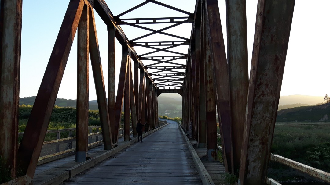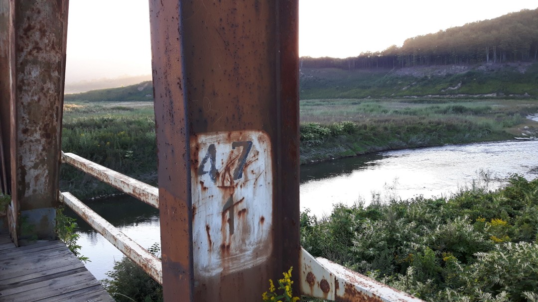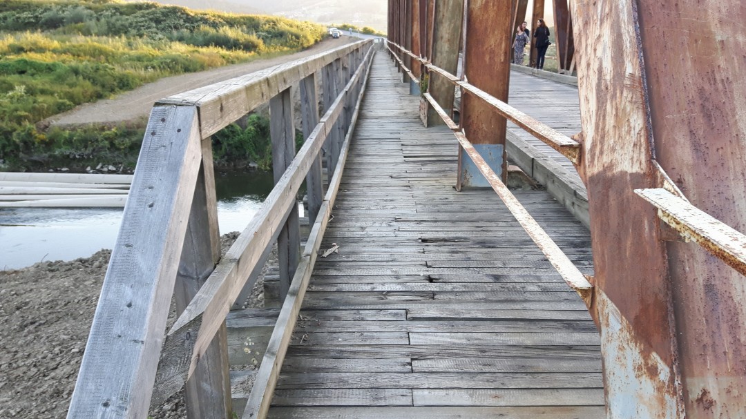 Jedno z ostatnich zdjęć starego mostu na Skawie, między Zagórzem a Mucharzem. Most został rozebrany kilka dni później.